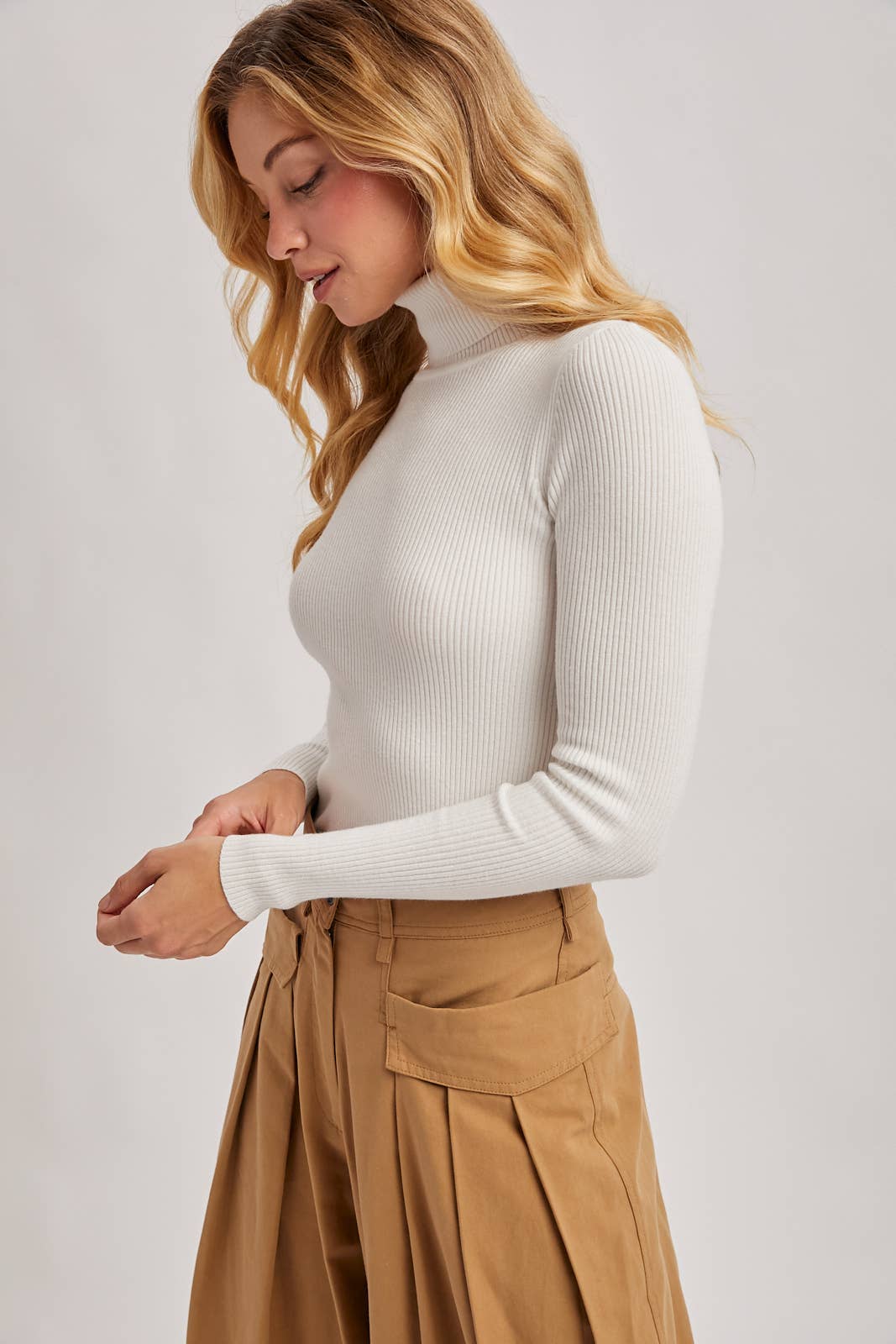 Introducing a must-have ribbed knit turtle neck pullover that seamlessly blends style and comfort. This essential piece showcases a slim fit, elegantly hugging your figure while providing a modern silhouette. With a mid-length design, it strikes a balance between versatility and chic. The ribbed texture adds a touch of dimension to the pullover, enhancing its visual appeal. Whether layered or worn on its own, this versatile pullover is a timeless addition to your wardrobe, perfect for creating both casual and polished looks.