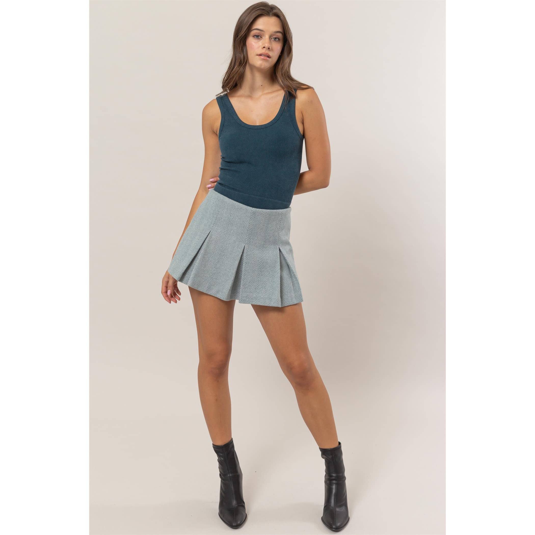 This skort is sure to become a staple in your wardrobe. It features a flattering high waist that hugs your curves beautifully and an a-line silhouette with pleat detailing that lends feminine allure to your look, finished with relaxed shorts.