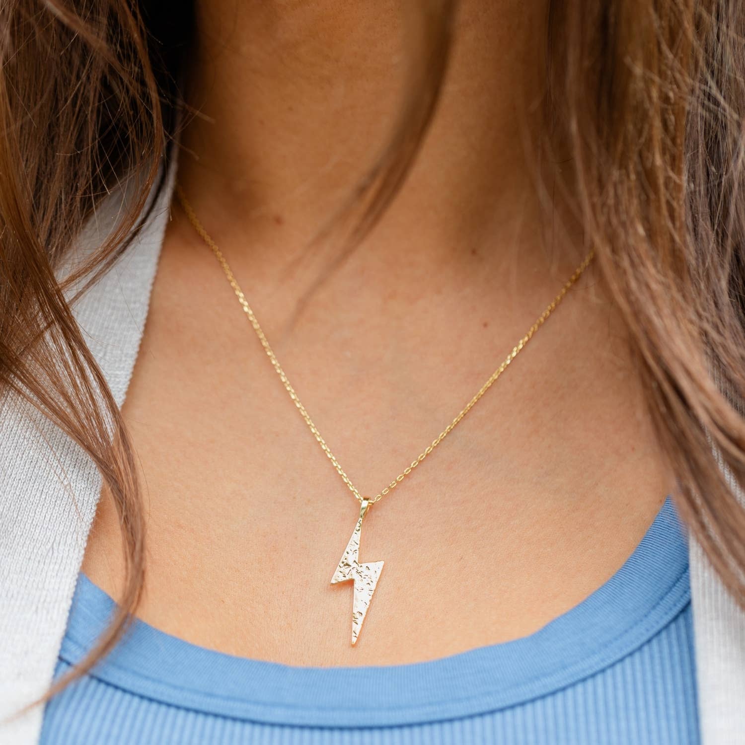 Gilded lightning strike pendant18" Necklace18k Gold or Rhodium PlatedBrass Base