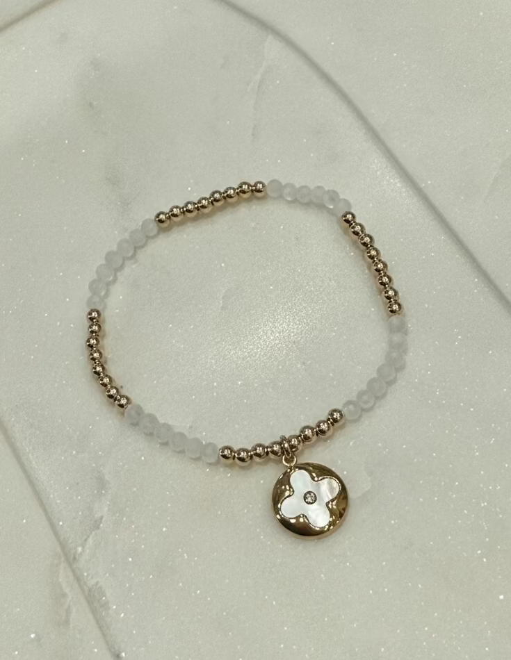 Rainbow Moonstone, Rose Quartz & Diamond Sweet Pea Studs
