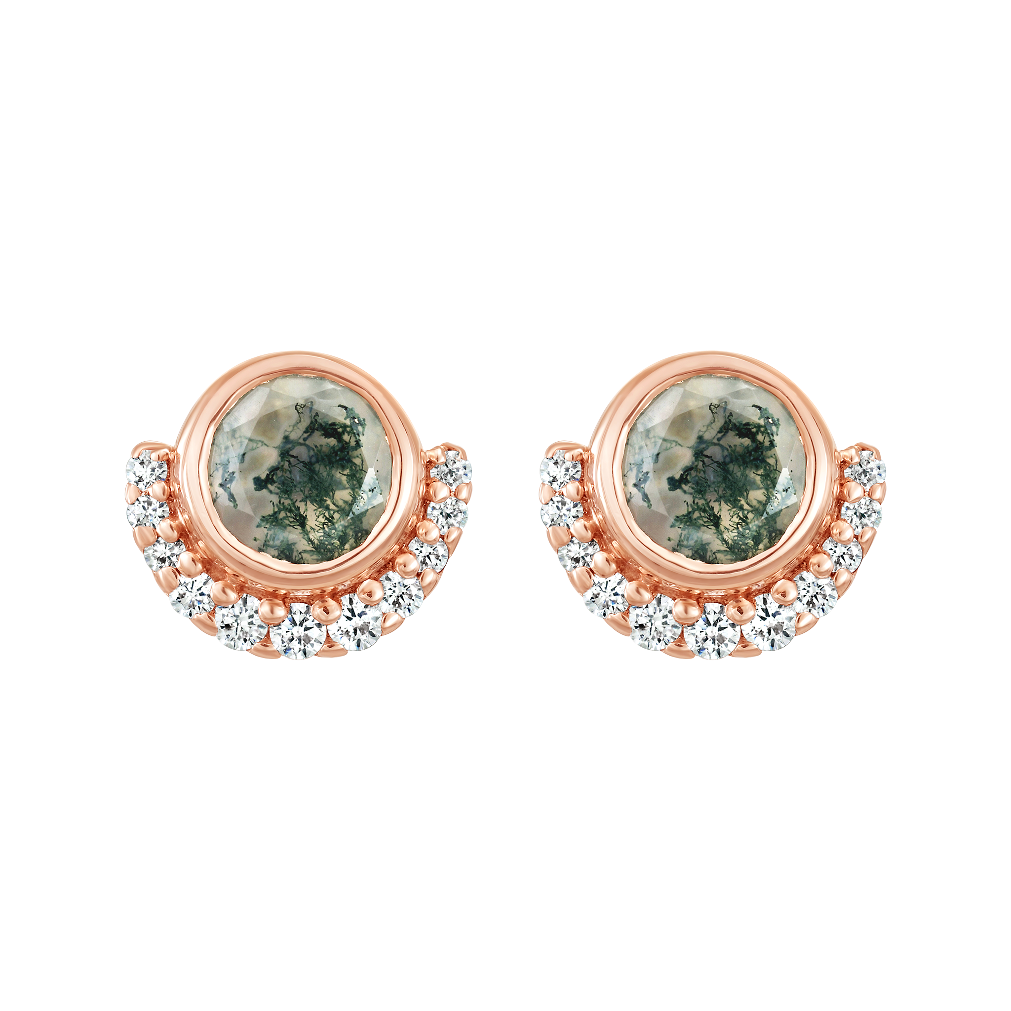 Rose Gold Moss Agate and Diamond Lunar Eclipse Studs