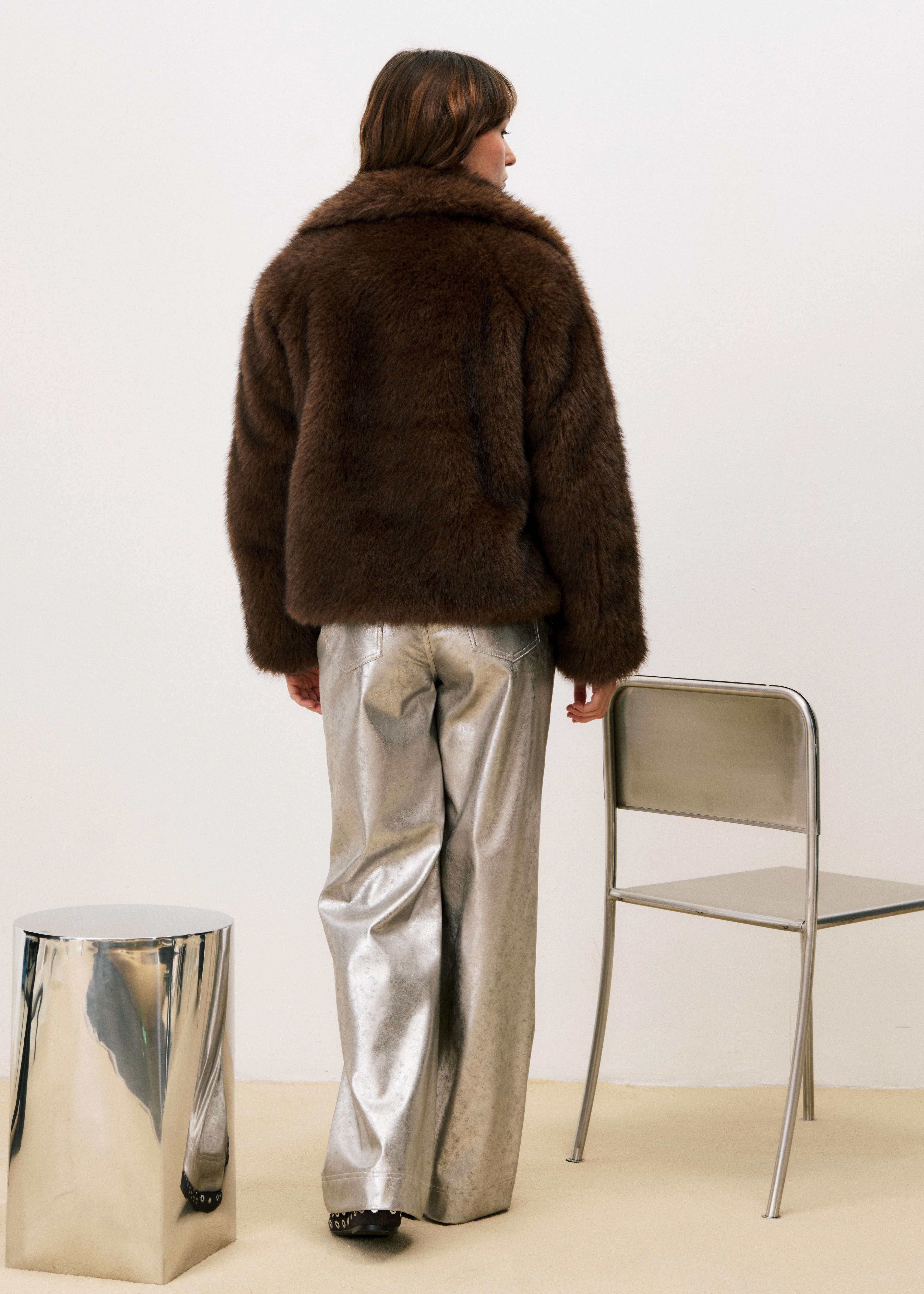 Wrap yourself in pure luxury with this show-stopping faux fur coat that's impossible to ignore. The ultra-plush texture feels as indulgent as the real thing, while the relaxed, slightly oversized silhouette keeps things effortlessly cool. A statement-making oversized rounded collar channels major '70s vibes, and hidden closures deliver a sleek, polished finish. Pure glamour, zero guilt.